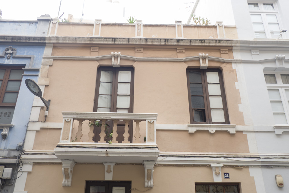 Edificio de dos niveles la fachada se compone de zócalo inferior que solo se interrumpe en el vano de acceso y coronación compuesta por cornisa moldurada y parapeto superior. Una moldura intermedia divide cada nivel prolongándose en un balcón con antepecho abalaustrado. Los vanos, proporcionalmente mas altos que anchos mantienen la misma proporción, se alinean estrictamente sobre ejes verticales, poseen decoración sobre el dintel en forma de dovela y en el nivel superior se vinculan con una moldura.