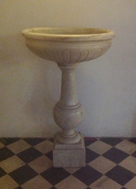 Pilha isenta de água benta, feita em mármore de um balaústre de autor anônimo e datada do século XIX.
